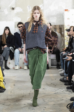 L’audace, le mélange des genres et la fantaisie sont une part prégnante de la signature de votre label. Qu’est-ce qui nourrit ce langage à contre-courant, qui se joue des codes masculin-féminin ainsi que des époques ? Je me sens profondément libre, dans mon esthétique comme dans ce que je désire exprimer chaque saison. Cela tient sans doute au fait d’avoir toujours entretenu une distance saine avec l’effervescence de la mode et de ses tendances. D’avoir cultivé une pensée singulière ainsi qu’une grande curiosité pour la musique, la littérature, le cinéma, tout en ayant des références très populaires. Je ne me mets pas de limites, pas de barrières et développe simplement ce qui me semble intéressant. Cela peut être une alliance de couture et de streetwear, une part de punk ou au contraire une forme de poésie. Des courants artistiques multiples et une ode au vintage comme des twists inattendus et des tissus ou des volumes détournés. Tout cela me permet de concevoir ma propre forme d’expression, non-conformiste et spontanée, où la narration tient une place centrale.