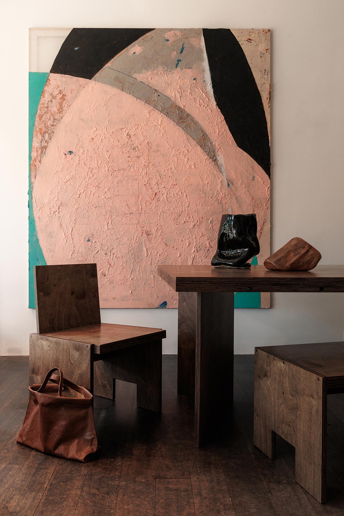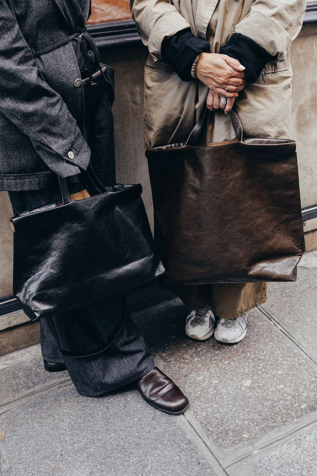 Outre du mobilier pour la marque belge Serax, vous avez aussi créé de superbes sacs en cuir ? Oui, d’ailleurs leur commercialisation est en pleine expansion. J’ai toujours désiré imaginer un sac. Dès leur création, main dans la main avec Liesbet Verstraeten (studio Cuoio), ils ont remporté un franc succès. Désormais, depuis un an, ces sacs ont conquis le monde entier prenant place dans de très belles boutiques en Europe, en Suisse mais aussi aux USA (notamment à New York), en Corée ou encore à Tokyo. Une très belle aventure… Ce sont des sacs à la fois élégants, intemporels et fonctionnels. Il y a plusieurs modèles déclinés dans des cuirs de différentes couleurs (noir, brun, blanc, vert…). Notre sac iconique reste notre premier modèle, le Shopper. Un sac unisexe, super pratique et qui peut se porter de diverses manières. Aujourd’hui il est décliné du S au XL ! Mais nous avons aussi d’autres modèles et de petits accessoires pour utiliser les chutes de cuir. Ils sont disponibles sur simple message Instagram ou, si vous préférez, directement dans ma boutique.