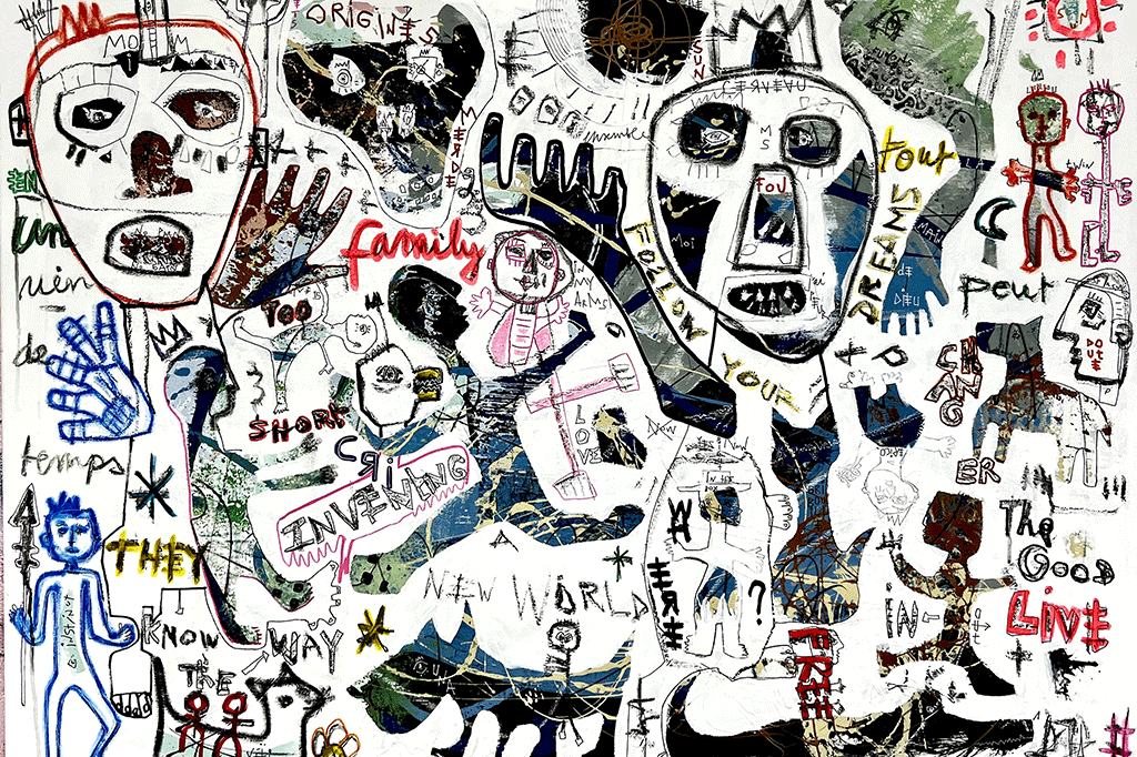 Pour vous, qui êtes tant dans le rapport à l’être, aux êtres, quelle importance prend le regard des spectateurs sur votre travail artistique ? Il m’apporte une analyse, une forme de compréhension incroyable. Des mots sur des contrastes et des sentiments qui étaient jusque-là restés aux limites de mon champ de vision, qui s’étaient imposés sans que je le réalise. Ainsi que sur la portée de ces influences qui me guident et imprègnent viscéralement ce que je crée. La passion des arts africains et amérindiens, des arts modernes et premiers aussi. L’élan pour des artistes comme Basquiat, Alechinsky, Picasso ou Dubuffet, dont la vision et les œuvres accompagnent cette réflexion sur la nature humaine.