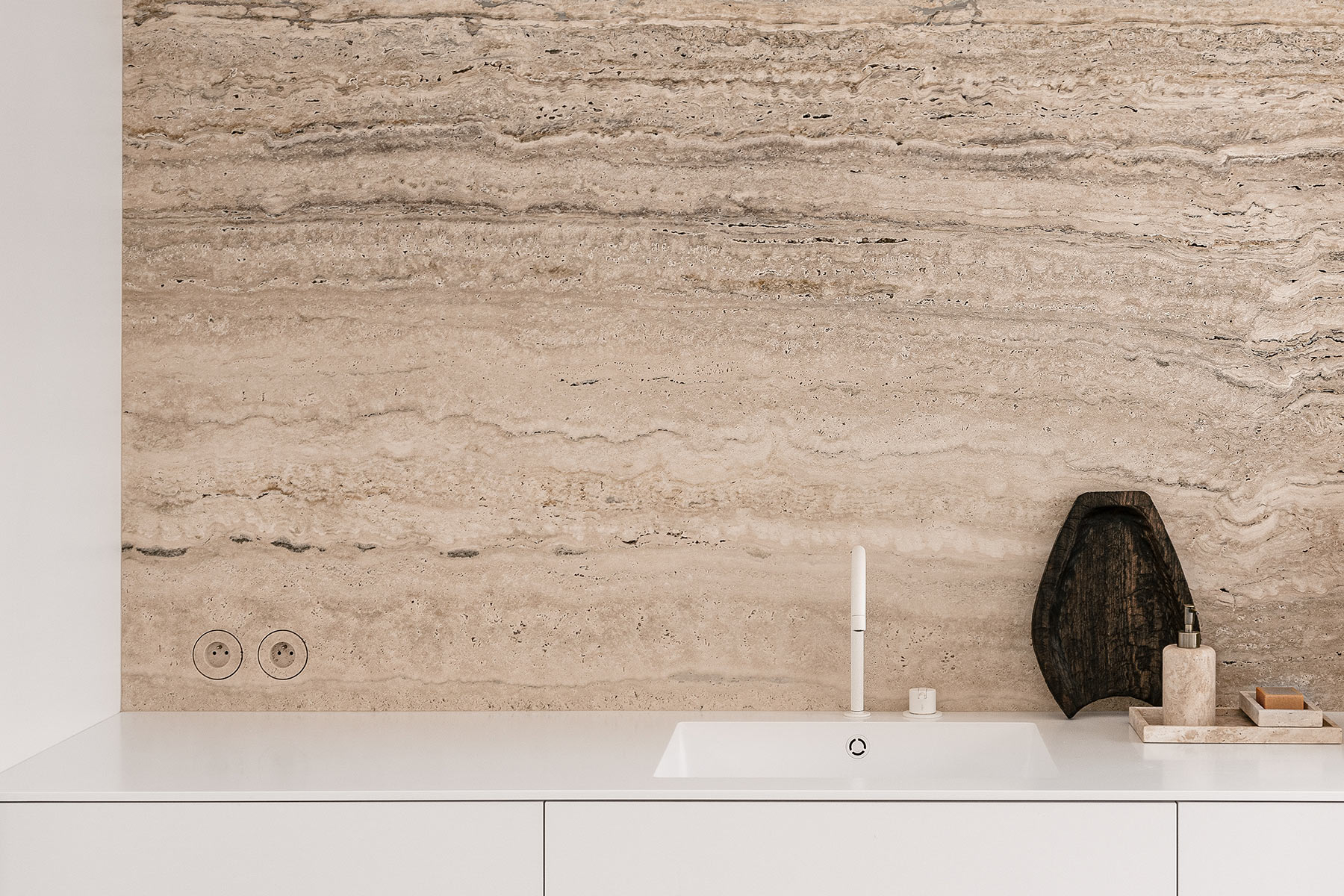 Pourquoi avoir fait le choix de vous concentrer exclusivement sur le résidentiel ? Pour l’infinité de ses possibilités, sa constante réinvention. Chaque projet développe un nouveau concept. Chaque lieu est imaginé sur-mesure. Lorsqu’un client fait appel à moi, je passe des heures à analyser sa façon de se mouvoir dans l’espace et de l’habiter, ses habitudes et les besoins qui en découlent. C’est une adaptation permanente de l’architecture à l’humain. Le résidentiel se détache de certaines contraintes et me permet d’employer pleinement ma créativité. Ces espaces, que je dessine durant deux ou trois mois, je les imagine comme un cadre où j’aimerais habiter. C’est une approche très personnelle, celle d’un refuge vivant, tactile. C’est ce qui m’amène à choisir des matériaux patinés, texturés, à aimer travailler notamment avec de l’argile. À côté de la beauté, la gestion de l’espace et des finitions est également essentielle. L’humidité, l’acoustique, font tout autant partie de l’expérience et du plaisir à vivre dans un lieu.