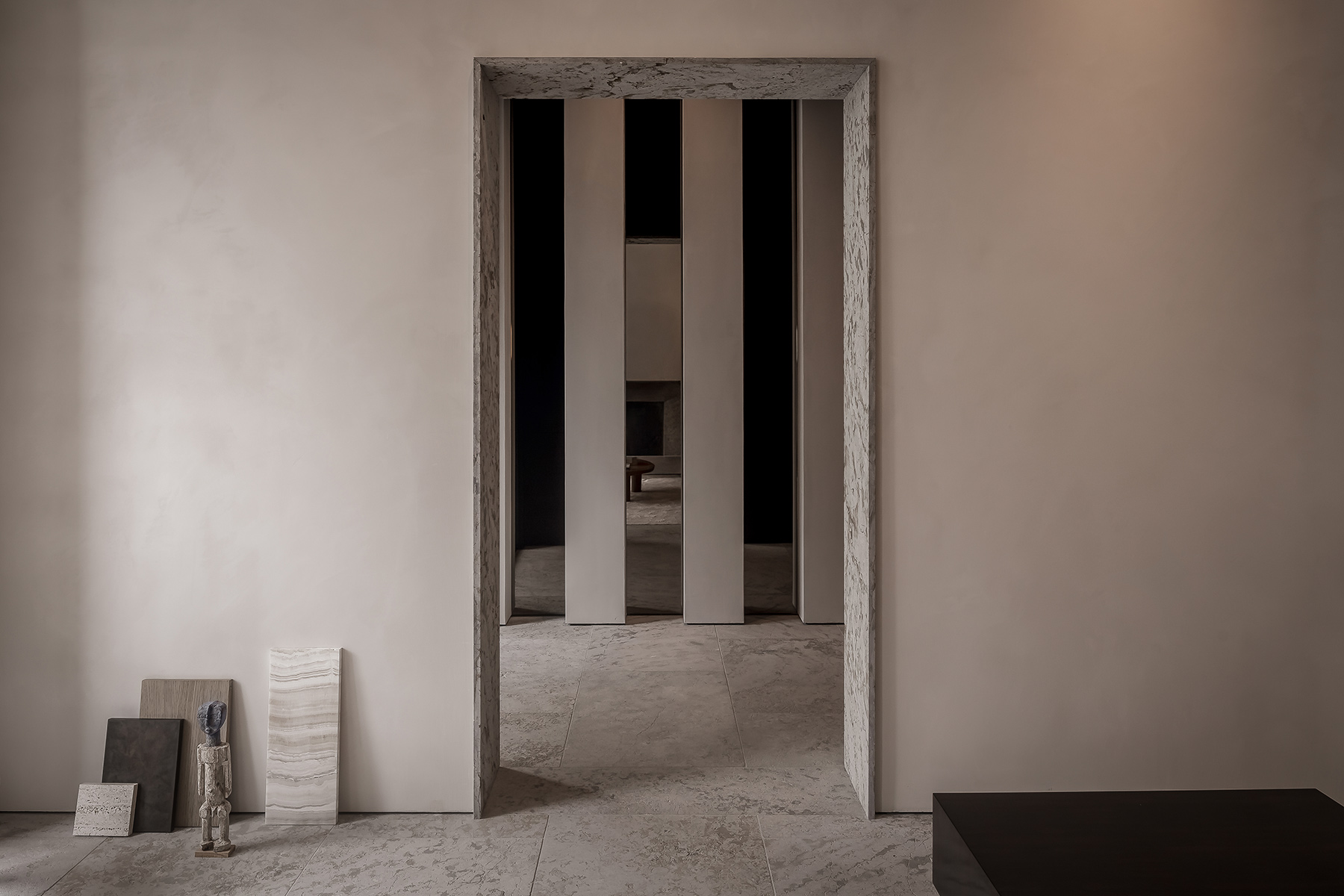 Il s’agissait aussi, en partie, d’un retour aux sources, puisque vous êtes belge par votre maman. Estimez-vous que cette identité ait influencé votre vision du design et de l’aménagement ? Dès le lancement du studio, je n’ai souhaité collaborer qu’avec des artisans belges, que j’estime être les meilleurs au monde. Un talent si précieux pour quelqu’un qui, comme moi, considère les finitions comme le reflet d’une forme d’exigence ultime. D’autant que je m’attache à employer des matériaux bruts et purs, qui doivent être travaillés avec énormément de savoir-faire et finesse. Je ressens un profond respect pour la nature. J’aime la sensation qu’elle suscite en nous, entre connexion profonde et intimidation, par sa dimension qui nous dépasse. Une notion de grandeur, que j’aspire à reproduire dans les endroits que je conçois, par les proportions, la hauteur, la matérialité.