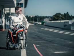 Ses études supérieures terminées et après quelques mois de recherche de boulot infructueuse, la passion de la course reprend le dessus. « En 2016, j’ai décidé de me consacrer pleinement à mon rêve, mais sans vraiment d’expérience. Je suis allé passer des tests au Mans dans l’écurie de Frédéric Sausset, SRT 41. J’y allais sans stress et sans trop de conviction, en me disant que je passerais une bonne journée au volant de belles voitures. Et à ma grande surprise, j’ai été repris dans l’équipe. » La structure créée par Frédéric Sausset, portant lui-même un lourd handicap, a pour objectif d’amener des pilotes en situation de handicap à participer aux 24 heures du Mans. L’épopée de Nigel pouvait commencer.