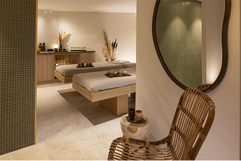 Le spa nous enveloppe dans une ambiance apaisante, entre bois clair, matières naturelles et lumière douce. Deux cabines, dont une duo, un hammam, une salle de fitness, et surtout une piscine intérieure chauffée, bordée d’une verrière ouverte sur le jardin. Dans son prolongement, un jacuzzi bouillonnant pour relâcher les tensions.
