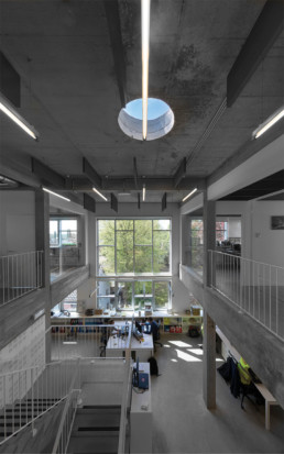 Caméléon. Car notre mission était de créer un bâtiment exemplaire du point de vue écologique et énergétique. Concevoir le premier bâtiment commercial de plus de 17 000m2, sans air conditionné, était l’un des nombreux défis. Nous avons suivi des formations. Nous nous sommes entourés des plus grands experts. Et le projet s’est construit en nous remettant perpétuellement en question, nous en tant qu’architectes et notre client comme utilisateur. Toutes les « règles de base commerciales » ont été remises en question ».