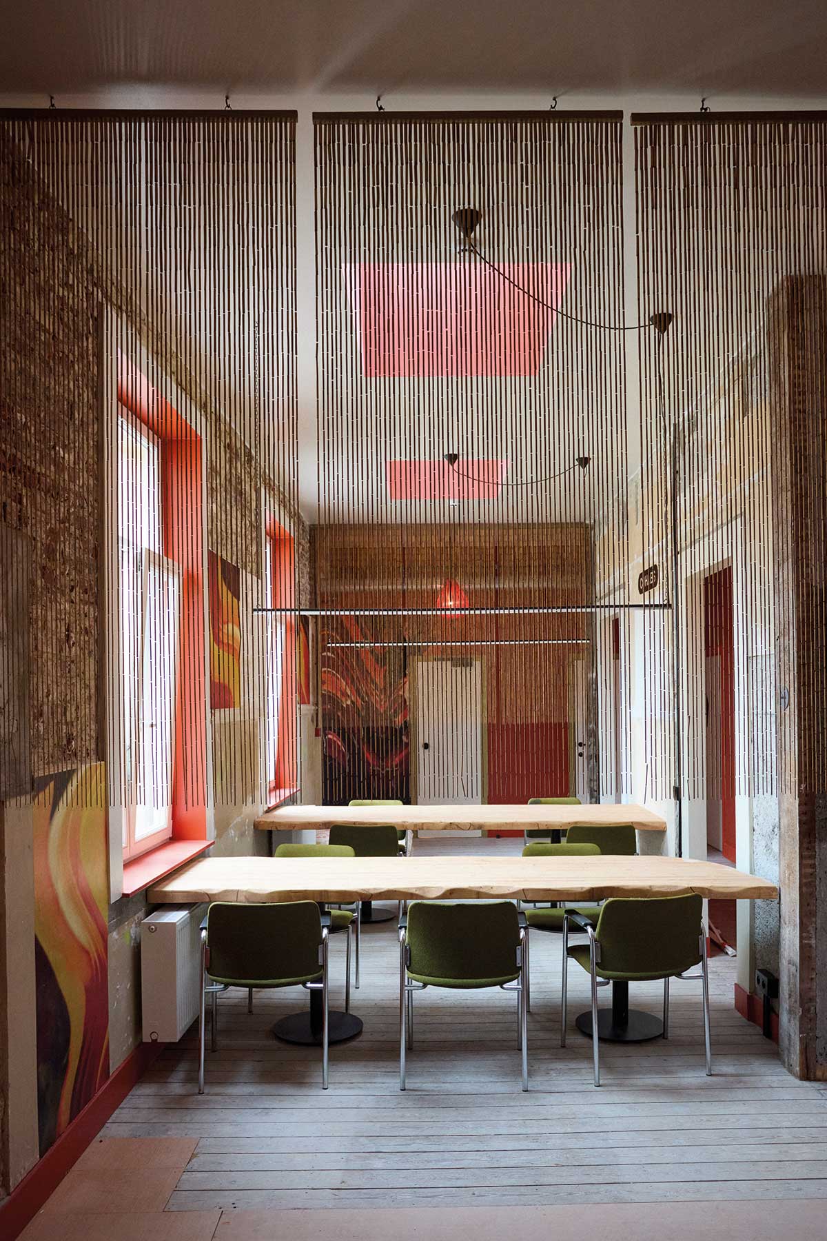 Près de 10 ans plus tard, Cohabs compte désormais 3000 chambres, réparties dans 9 villes, non seulement en Europe mais aussi aux USA. La demande a-t-elle changé en une décennie ? La situation globale s’est fondamentalement transformée. Acheter un logement est devenu ardu voire presque impossible dans certaines capitales. Les mentalités aussi ont évolué. Aujourd’hui, les gens passent plus facilement le cap d’un lieu partagé sous d’autres formes que les kots étudiants. Par élan de liberté notamment et la possibilité d’être plus nomade, qui s’inscrit pleinement dans l’air du temps. Ceux qui investissent un lieu signé Cohabs y restent en moyenne 11 mois et c’est tout le sens du concept. Changer d’endroit sur un coup de tête ou découvrir un pays, sans être réfréné par un bail longue durée. Et puis à côté de ça, il y a ceux qui recherchent le lien et le contact ou l’aspect écologique, nos espaces misant sur la durabilité avec un partage des ressources et la rénovation d’anciens bâtiments. C’est d’ailleurs aussi pour cela que nous avons fait appel à Lionel Jadot pour en concevoir les intérieurs. Au-delà de son talent incroyable de designer, il a fait de l’upcycling l’ADN de son univers. C’est ce qu’il fallait à ce projet profondément humain.