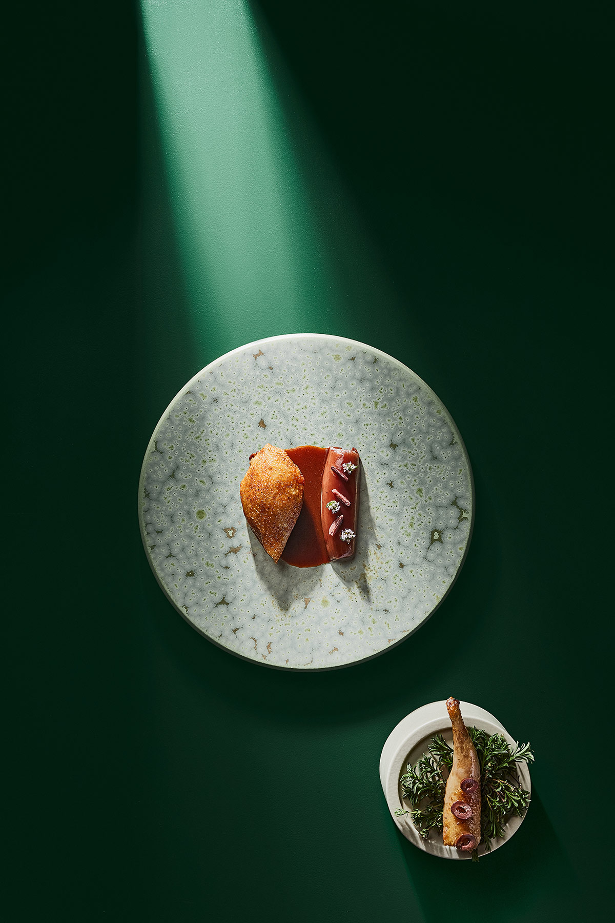 En se rendant sur les lieux, on découvre assez rapidement les raisons pour lesquelles le chef a décidé de donner le nom de l’une des plus célèbres pierres fines à son établissement. La matière brute est la star du show culinaire et David-Alexandre Bruno se charge de la polir avec son propre univers. « J’affectionne beaucoup les assaisonnements, les poivres, etc. C’est une cuisine assez nuancée et assez vive », nous glisse le propriétaire. Les convives, eux, profitent d’une atmosphère intimiste et minimaliste. Le design décline des couleurs vertes et naturelles mais aussi des matériaux, une nouvelle fois bruts, comme le carrelage qui sublime le décor aussi bien sur les murs qu’au sol.