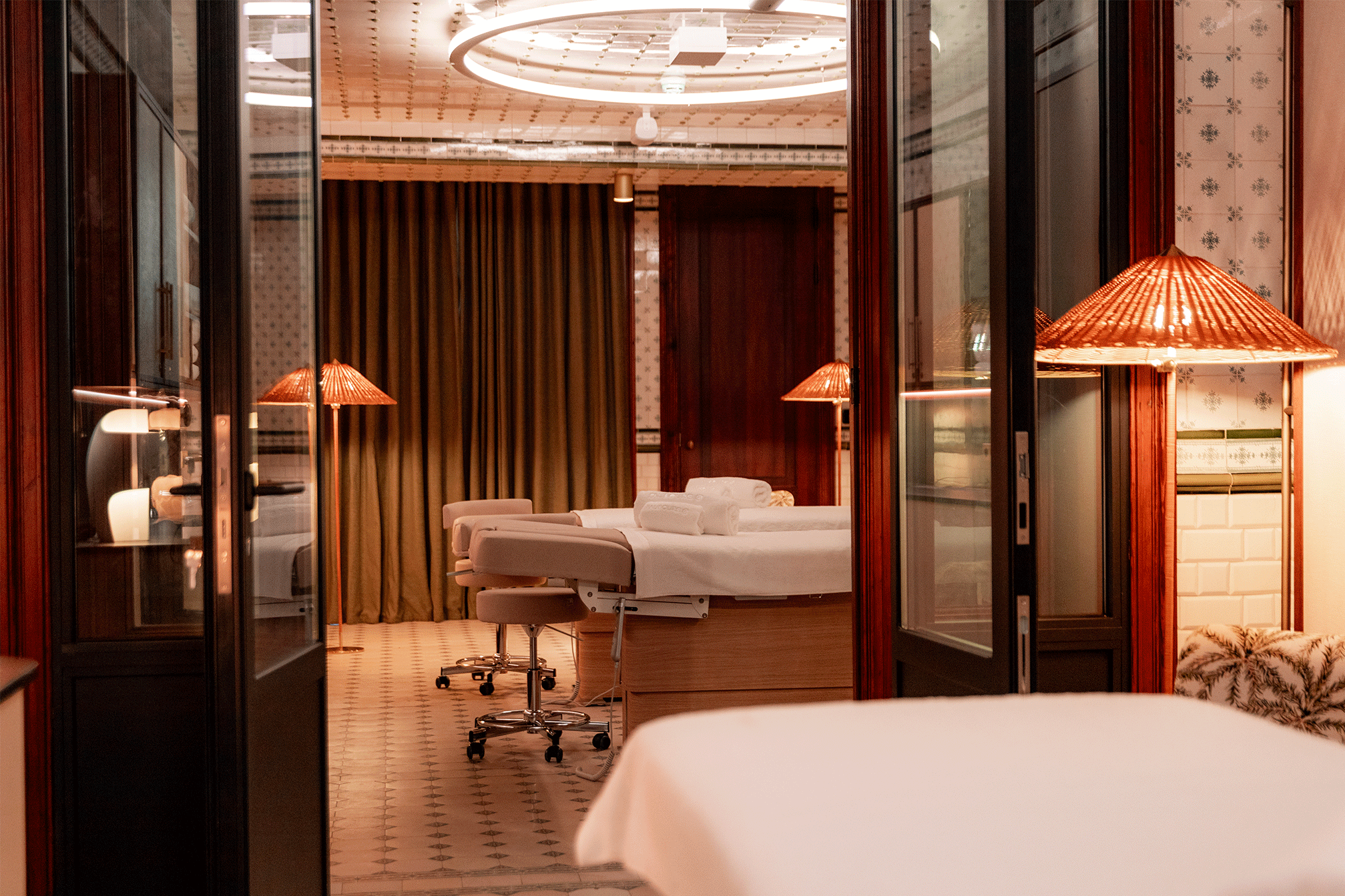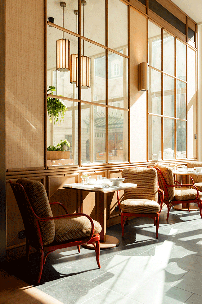 Celles-ci prolongent l’immersion d’un voyage dans le temps, au chic intemporel et aux finitions délicates. Il faut dire que l’ensemble de l’aménagement et de la décoration de l’établissement a été confié à Maison Sarah Lavoine, dont les jeux de matière, de couleurs et de lignes flirtent avec subtilité entre majesté et douceur, mariant essence noble et empreinte conviviale. Toutes uniques, elles proposent une palette d’ambiances, des chambres deluxe aux suites Héritage, Héloïse ou encore Faubourg 21, avec une superficie allant de 25 à 60 mètres carrés. L’atmosphère précieuse se prolonge aussi au sein de Ré Labo de Beauté, l’espace wellness de l’hôtel. Si le cadre et son élégance classique rappellent ceux des boudoirs feutrés plutôt que des spas standards, c’est pourtant au sein des anciennes cuisines que sont installés trois cabines de soins, un bio-sauna, une cabine infra-rouge, une douche expérience et une salle de fitness. Loin de renier cet héritage, la structure d’origine et les carrelages d’époque ont au contraire été conservés, afin d’allier moment bien-être et écrin historique.