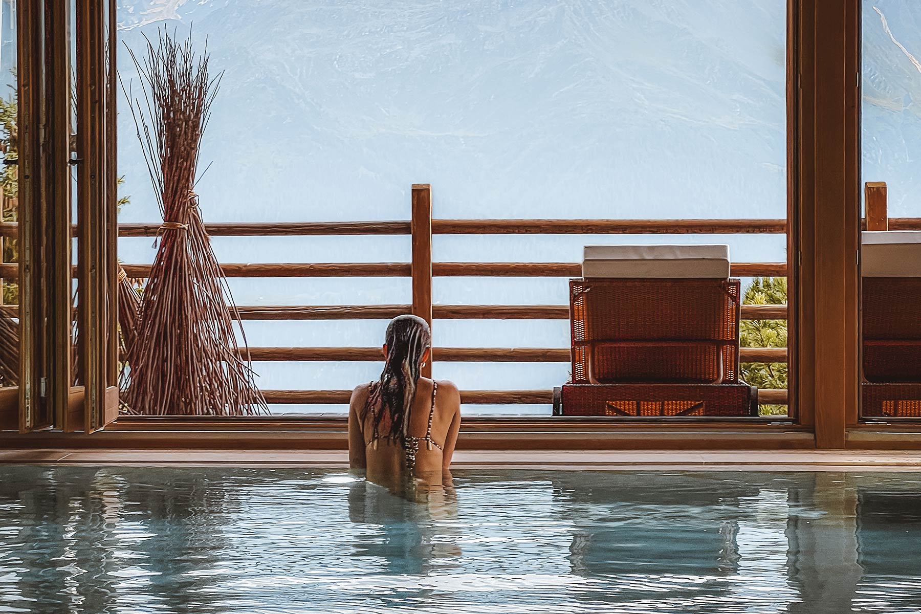 Mais plus qu’une halte de luxe, plus qu’une parenthèse ressourçante, le Chalet d’Adrien se distingue par son panorama, dont on ne cesse jamais de s’émerveiller. Une vue à couper le souffle, qui s’impose sans cesse, partout, éblouissante. À travers les fenêtres des chambres, pour des rêves à ciel ouvert, en nageant face aux massifs, ou en s’installant sur La Terrasse pour un goûter ou un chocolat chaud nocturne, pelotonné dans des fauteuils donnant sur les massifs du Grand Combin et sur le Mont Vélan. La sérénité, à son zénith.