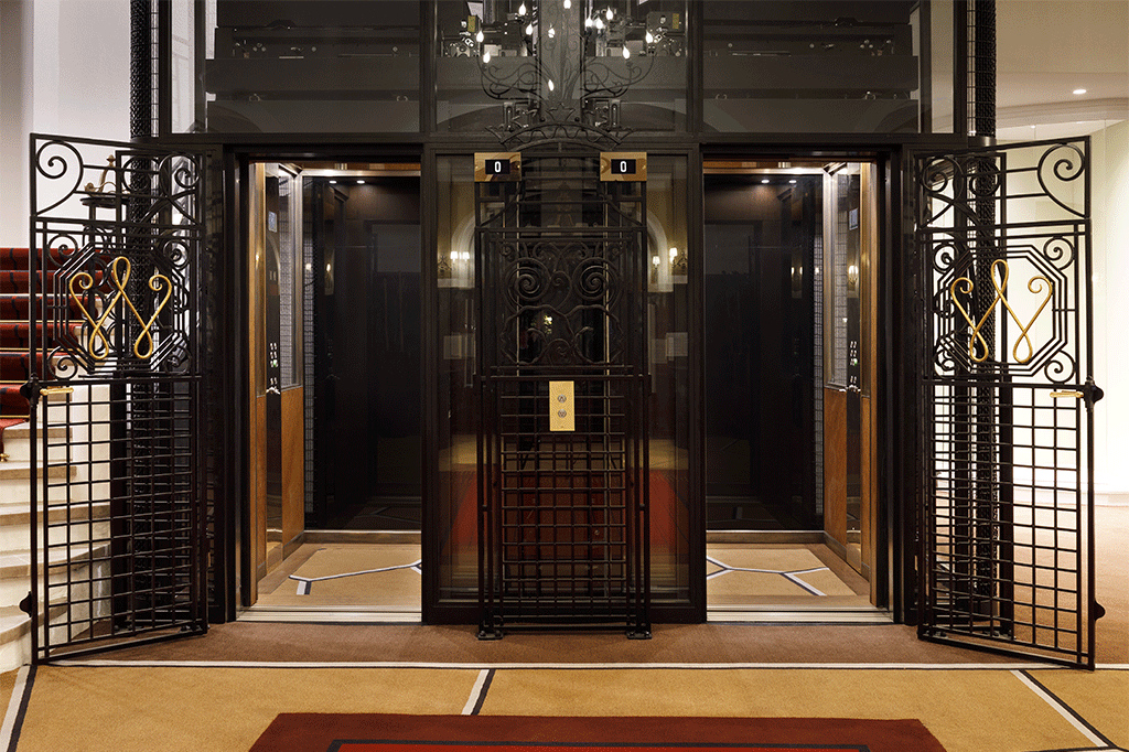 Le défi était pourtant de taille. Revisiter l’esprit, sans en effacer le caractère, ce mélange purement touquetois d’architecture art déco et de luxe feutré, façon manoir britannique. Il n’aurait pu être plus réussi. Porte à tambours, comptoirs en bois noble et escaliers en marbre, les éléments restaurés demeurent partout les témoins d’un âge d’or subtilement modernisé. La plus impressionnante étant la majestueuse cage d’ascenseur en ferronnerie et verre, au centre du grand hall, dont les arabesques de métal et le W signature se retrouvent également à chacun des quatre étages de l’hôtel. L’établissement abrite 104 chambres et suites, où le prestige contemporain rencontre les codes des années folles. Laque et marbre, cuir tabac et chêne fumé, les matériaux sont précieux, les teintes royales, bleu de Prusse, rouge Basque, gris et sable. Un dialogue entre présent et héritage qui passe aussi par l’art qui ponctue les espaces de l’hôtel.