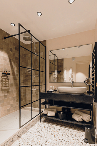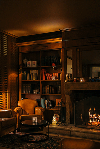 Le salon et son bar aux accents british, où quelques profonds canapés en cuir fauve et des fauteuils enveloppants invitent à s’attarder, offrent un décor chaleureux. Un cadre idéal pour un moment gourmand au coin du feu.