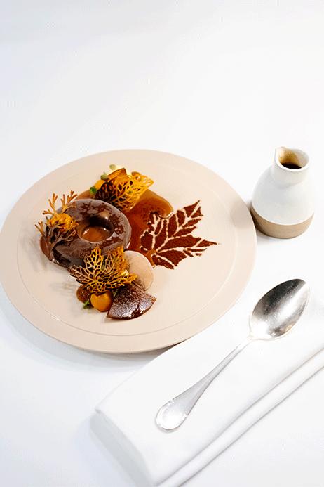 C’est dans une élégante maison de maître vigneron du XIXe siècle, attenante à l’Hostellerie, que nous découvrons le Clos du Cèdre, le restaurant gastronomique étoilé de la maison. Dans l’intimité feutrée des salons d’époque, entre moulures, miroirs dorés et parquet ancien, chaque table semble installée pour une conversation à voix basse.