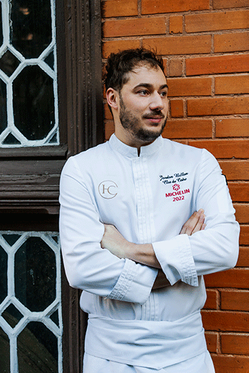 En cuisine, le chef Jordan Billan signe une partition personnelle, enracinée dans une exigence de goût plus que dans une lecture attendue du terroir. Ici, la carte joue sur les contrastes : Homard bleu Breton, tartelette tomates et huile d’olive, Gaspacho tomates & fraises, crème glacée câpres (un délice), Pigeon rôti et fumé au foin, cuisse confite & cromesquis d’abats, Morille farcie ail noir & petit-pois mentholé, jus au foin et vinaigre vin jaune, ou encore Truite bio Ikejime & saucisse de Morteau, spaghettis de courgettes et pesto de basilic, sauce terre & mer. En dessert, un Parfait glacé nectarine et mousse anis de Flavigny, sorbet fenouil conclut cette signature singulière jusqu’à la dernière cuillerée.