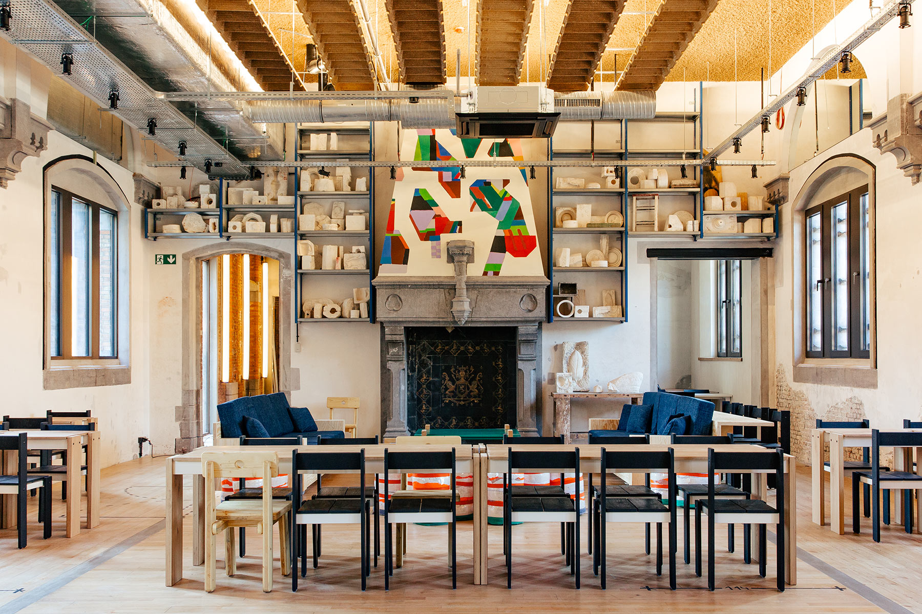 Un esprit libre. Une énergie, chaleureuse, éclectique et communicative. Bien plus qu’une marque hôtelière, Jam, c’est un univers, affirmé et multiple à la fois, comme le confirme ce troisième pied à terre, dévoilé à Gand en octobre 2025. Tout avait démarré il y a six ans, par la transformation d’une ancienne école d’art saint-gilloise, suivie en 2022 par la restauration d’un immeuble de bureaux au cœur de la capitale portugaise. C’est désormais dans la monumentale Leopoldskazerne, que Jam a pris ses nouveaux quartiers. Cette ancienne forteresse militaire du début du 20e siècle, installée tout à proximité du vivier culturel du Musée des Beaux-Arts de Gand (MSK) et du S.M.A.K., s’est reconvertie en emplacement verdoyant et branché accueillant aujourd’hui, en parallèle à l’hôtel, des logements et des bureaux.