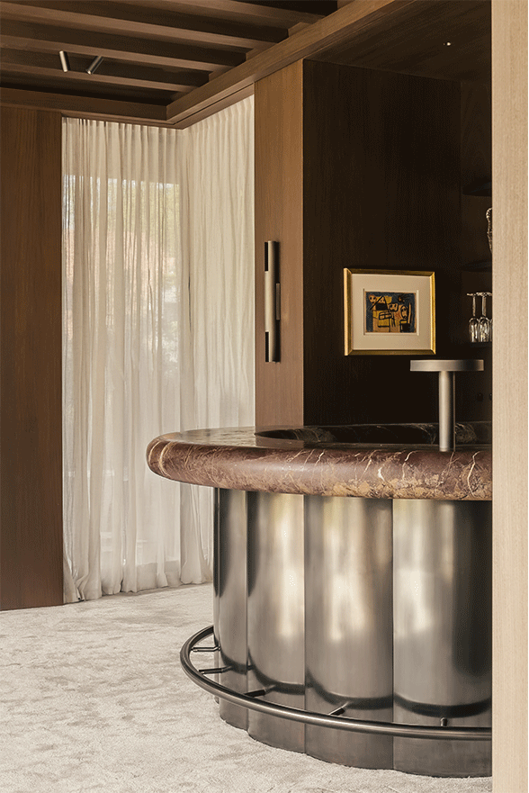 Pourquoi avoir fait le choix de vous concentrer exclusivement sur le résidentiel ? Pour l’infinité de ses possibilités, sa constante réinvention. Chaque projet développe un nouveau concept. Chaque lieu est imaginé sur-mesure. Lorsqu’un client fait appel à moi, je passe des heures à analyser sa façon de se mouvoir dans l’espace et de l’habiter, ses habitudes et les besoins qui en découlent. C’est une adaptation permanente de l’architecture à l’humain. Le résidentiel se détache de certaines contraintes et me permet d’employer pleinement ma créativité. Ces espaces, que je dessine durant deux ou trois mois, je les imagine comme un cadre où j’aimerais habiter. C’est une approche très personnelle, celle d’un refuge vivant, tactile. C’est ce qui m’amène à choisir des matériaux patinés, texturés, à aimer travailler notamment avec de l’argile. À côté de la beauté, la gestion de l’espace et des finitions est également essentielle. L’humidité, l’acoustique, font tout autant partie de l’expérience et du plaisir à vivre dans un lieu.
